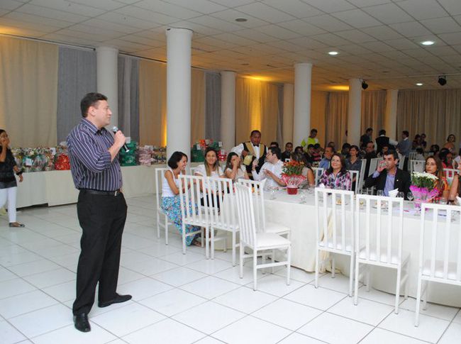 A programação deste ano reservou muitas surpresas aos convidados. Depois da mensagem de fim de ano feita pela servidora Isabel Lopizic, que também comandou o momento de oração no início da festa, os personagens da comédia Pão com Ovo, Clarice Milhomem e Dijé entraram no salão para fazer todo mundo gargalhar com as aventuras da dupla.