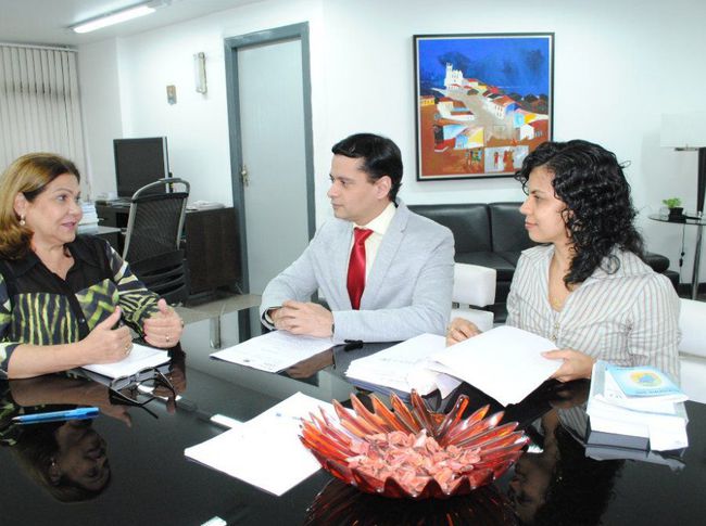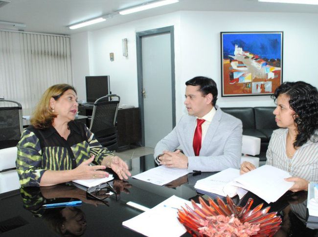 O defensor geral do Estado, Aldy Mello Filho, e a procuradora geral do Estado, Helena Haickel, estiveram reunidos na sede da Procuradoria Geral do Estado (PGE), na última quarta-feira (28), para discutir projeto de lei que trata da readequação funcional dos servidores da DPE. Também participou do encontro a procuradora do Estado Gabriela Abdala.