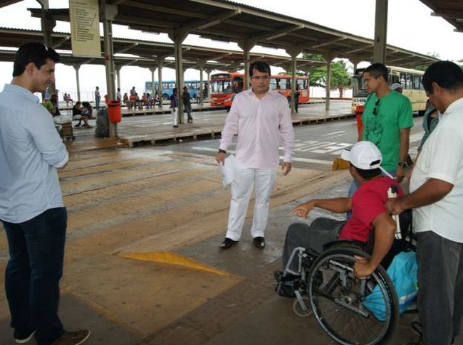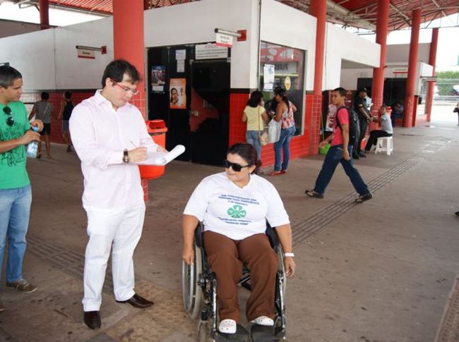 Os terminais de integração de transporte público da Praia Grande e da Cohama foram alvos de vistoria realizada pelo defensor público titular do Núcleo de Defesa do Idoso, da Saúde e da Pessoa com Deficiência da Defensoria Pública do Estado (DPE/MA), Benito Pereira Filho, pela coordenadora do Centro Integrado de Apoio à Pessoa com Deficiência (Ciapd), da DPE, Lívia Carvalho, e pelos representantes do Conselho de Arquitetura e Urbanismo do Maranhão (CAU), Fernando Cutrim e Raimundo Ramos. O objetivo da ação foi verificar as condições de funcionamento dos terminais, no que tange às regras de acessibilidade destinadas a pessoas com deficiência.