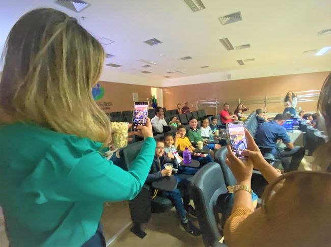 Após assistirem ao filme “Madagascar”, os pais puderam mostrar aos seus filhos e filhas um pouco sobre como desempenham as suas funções no trabalho. Além de trocarem experiências, as famílias brincaram, ganharam brindes e degustaram um delicioso lanche.
