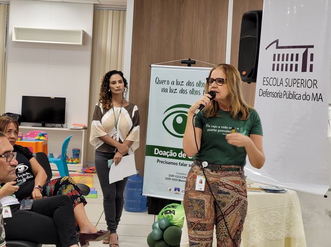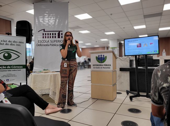 Com o tema “Doação de órgãos: precisamos falar sobre isso”, foi realizada nesta quinta-feira (29), na área de atendimento da Defensoria Pública do Maranhão, palestra voltada para a campanha Setembro Verde. A programação teve o intuito de sensibilizar assistidos e assistidas da DPE/MA, bem como os defensores públicos, servidores, colaboradores e estagiários da instituição sobre a importância da mobilização em torno da doação de órgãos.