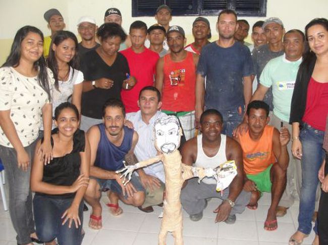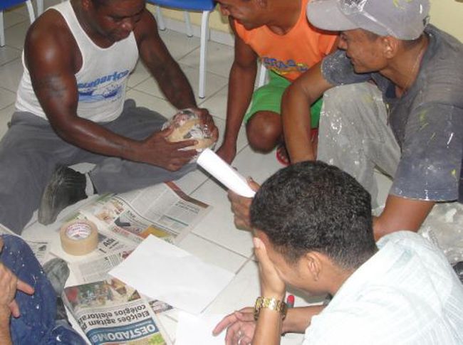 Semente – Cleudes informou, ainda, que um dos momentos marcantes da oficina foi a confecção, em 15 minutos, de um boneco em papel jornal e fita crepe, de cerca de um metro de altura. “A ideia, já que eles vão trabalhar na construção civil, foi estimular a criatividade, o senso de compromisso, o trabalho em equipe e a responsabilidade frente ao desafio da reintegração social, a partir do mercado de trabalho”. Os participantes batizaram o boneco com o sugestivo nome de Semente da Vida.