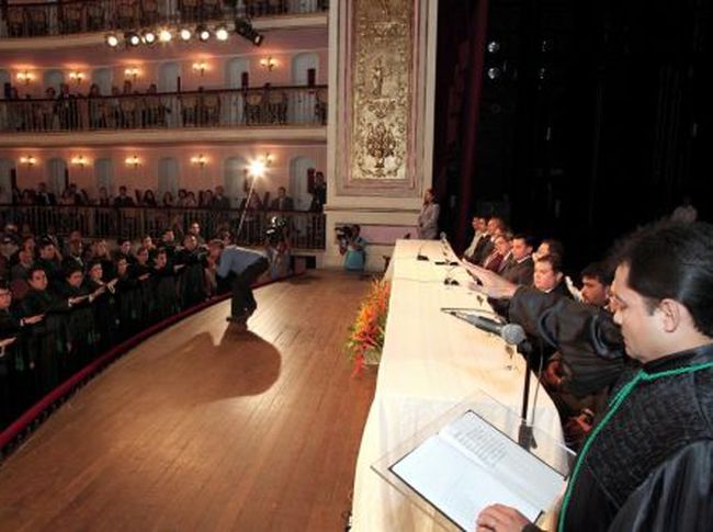 O defensor geral do Estado, Aldy Mello de Araújo Filho, empossou na noite de terça-feira (25), 23 defensores públicos que irão reforçar a atuação da Defensoria Pública na capital e ampliar o atendimento no interior do Estado. A solenidade, ocorrida no Teatro Arthur Azevedo, contou com a presença do vice-governador Washington Oliveira, do secretário de Estado de Planejamento, Orçamento e Gestão (Seplan), Fábio Gondim, do defensor público-geral da União, no Estado, Miguel de Almeida Lima, da procuradora Geral do Estado, Helena Maria Haickel entre outras autoridades do Executivo, Legislativo e Judiciário, além de representantes da sociedade civil.