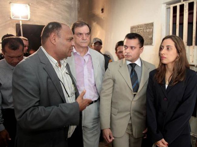 O defensor-geral do Estado, Aldy Mello de Araújo Filho, e a corregedora geral da DPE/MA, Fabíola Barros, acompanharam a visita do secretário de Estado de Justiça e Administração Penitenciária, Sérgio Tamer, na manhã desta quinta-feira (6), ao Complexo Penitenciário de Pedrinhas. Também estiveram presentes o juiz da 2ª Vara Penal, Douglas Melo, e o secretário adjunto de Justiça e Reintegração Social, Frei Ribamar Cardoso. Além de conhecer as instalações das unidades prisionais e manter contato com os presos, Sérgio Tamer apresentou aos funcionários a proposta da nova estrutura da recém-criada secretaria.