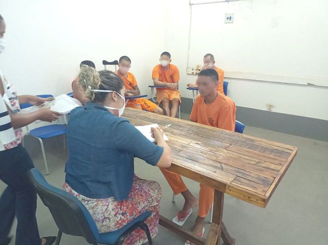 Além dos encontros na unidade prisional, o projeto também contou com atividades na recepção do Núcleo de Execução Penal voltadas para as companheiras, mães, irmãs, avós de internos ou até mesmo as vítimas de delitos que buscam assistência jurídica para seus parentes privados de liberdade. Para esse grupo, foram realizadas salas de espera de educação em diretos, principalmente, para desnaturalizar a cultura de violações que elas sofrem.
