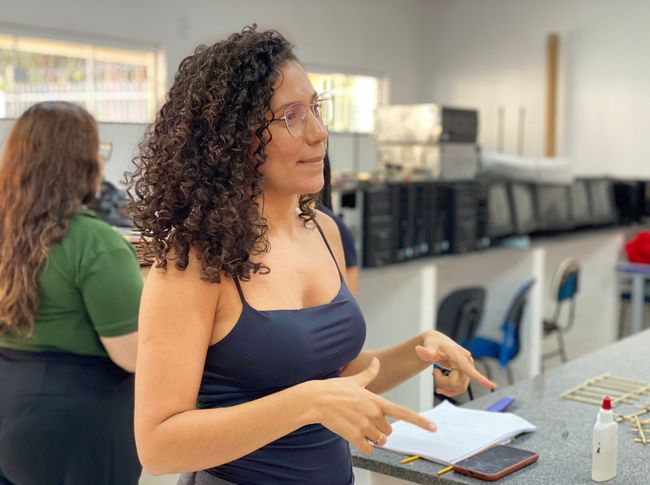 Ao longo da semana, os participantes tiveram aulas presenciais ministradas pela professora Maelle Garreto, coordenadora do Centro Integrado de Apoio à Pessoa com Deficiência (CIAPD), e pela intérprete de LIBRAS Sonaya de Araújo Vieira Melo, que contribuiu de forma remota.