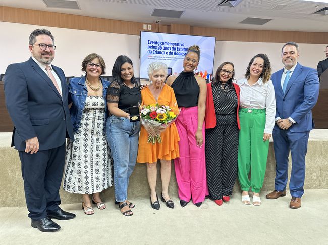 A Defensoria Pública do Estado do Maranhão (DPE/MA) realizou, nesta quinta-feira (24), um evento marcante em comemoração aos 35 anos do Estatuto da Criança e do Adolescente (ECA). A solenidade, que reuniu autoridades, membros e servidores da instituição, representantes da rede de proteção dos direitos da criança e do adolescente, foi tomada por forte emoção com homenagens a quem contribuiu com a história do Núcleo de Defesa da Criança e do Adolescente (NDCA) da DPE/MA, e também por reflexões provocadas pelo representante do Unicef Brasil, Mário Volpi, integrante do grupo que redigiu o ECA.