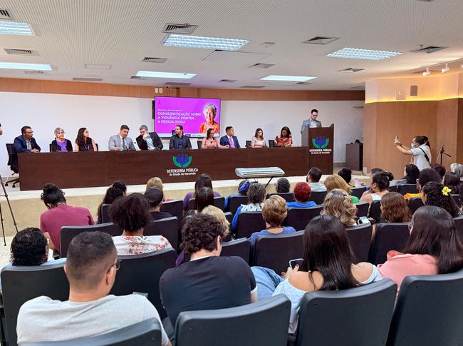 A médica geriatra Jacira Nascimento Serra aprofundou o tema central da campanha deste ano durante a palestra magna do evento de abertura, destacando a necessidade de um compromisso coletivo na proteção e valorização da pessoa idosa. “Tenho muito orgulho de dizer que estou junto da Defensoria Pública na quinta edição da Campanha de Conscientização sobre a Violência contra a Pessoa Idosa. Esse ano estamos falando sobre ‘Amor, respeito e proteção à pessoa idosa: compromisso de todos, dever da sociedade’, um tema maravilhoso e muito atual. Isso é só o que pedimos como idosos, que nos amem, nos respeitem e nos protejam com as leis. Parem com idadismo, nós estamos onde queremos estar”, reforça a geriatra.
