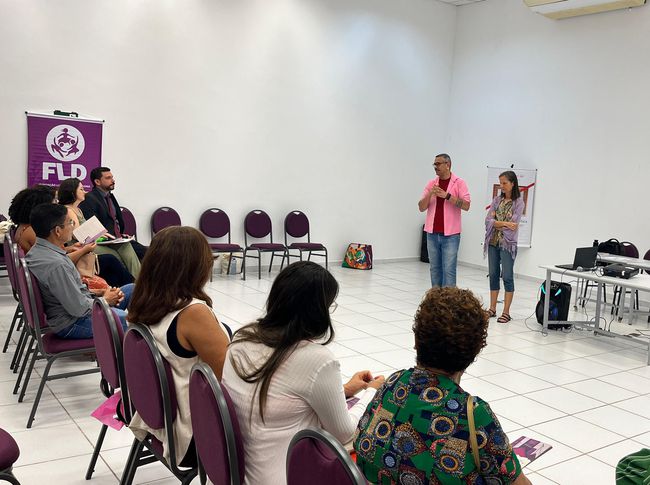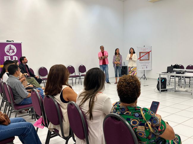 No primeiro dia de atividades, foi realizada uma oficina, ministrada por Renate Gierus e Rogério Oliveira de Aguiar, representantes da FLD. A atividade incluiu a participação de agentes comunitários, profissionais da saúde, assistentes sociais e outros envolvidos no acolhimento de vítimas, promovendo a troca de informações e o fortalecimento de estratégias de enfrentamento à violência doméstica.