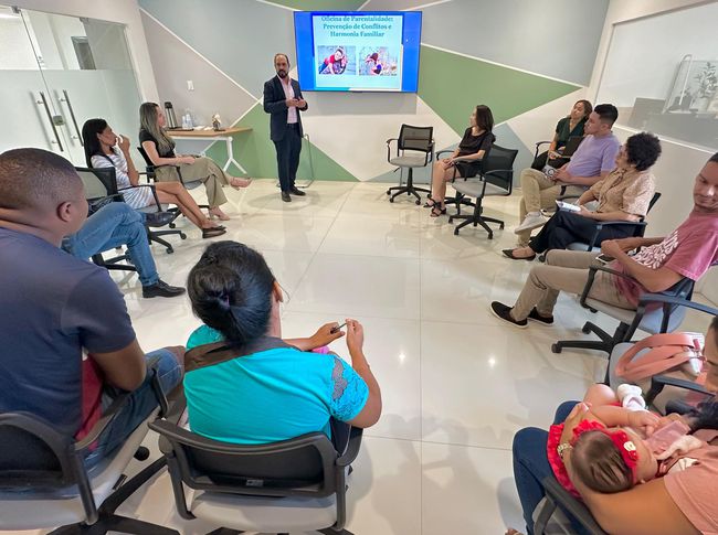 A Defensoria Pública do Estado do Maranhão (DPE/MA) realizou nesta quarta-feira (06), na Sala de Inovação do edifício-sede, em São Luís, uma Oficina de Parentalidade com a presença de famílias assistidas pela instituição. Conduzida pelo coordenador da Central de Relacionamento com o Cidadão, o defensor público Thiago Josino Carrilho de Arruda Macedo, a atividade fez parte do projeto de reconhecimento de paternidade e contou, inclusive, com a entrega de resultado de exames gratuitos de DNA.