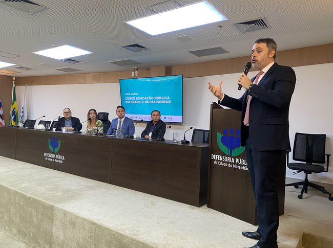 A Defensoria Pública do Estado do Maranhão (DPE/MA), por meio da Escola Superior (Esdpe), promoveu o encerramento do Curso de Educação Pública no Brasil e no Maranhão. A abertura da solenidade foi conduzida pela 1ª subdefensora-geral do Estado, Cristiane Marques, acompanhada por autoridades como o secretário de Estado de Monitoramento de Ações Governamentais (Semag), Alberto Pessoa Bastos, e pelo diretor de Desenvolvimento da Gestão Pública e Políticas Educacionais da Fundação Getúlio Vargas (FGV DGPE) e ex-ministro da Educação (2014 – 2015), José Henrique Paim Fernandes.