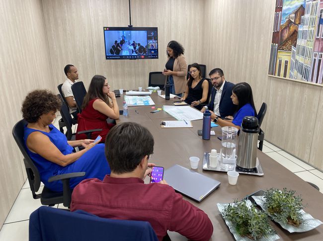 Durante a tarde, vários defensores públicos e consultores da Fundação Getúlio Vargas se reuniram para discutir a consolidação do texto do Plano Institucional de Erradicação do Analfabetismo Infantil.