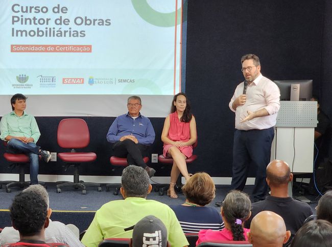 A Defensoria Pública do Estado do Maranhão (DPE/MA), em parceria com o Serviço Nacional de Aprendizagem Industrial (Senai) e a Secretaria Municipal da Criança e Assistência Social (Semcas), certificou, nesta quarta-feira (11), 20 alunos concluintes do curso de pintor de obras imobiliárias. Os formandos são pessoas em situação de rua, que buscam uma nova oportunidade.