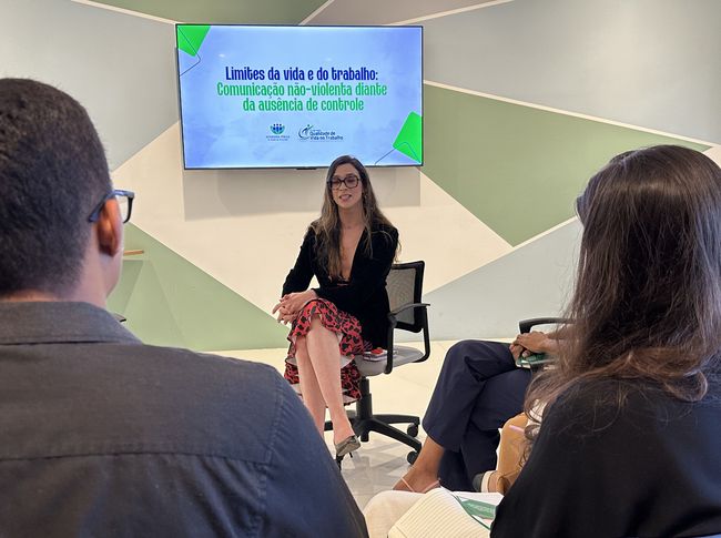 A Defensoria Pública do Estado do Maranhão (DPE/MA), por meio da Psicologia Organizacional e do Trabalho, inovou na promoção do bem-estar do seu corpo funcional e iniciou uma série de rodas de conversas com Grupo Terapêutico. A iniciativa faz parte do Programa Qualidade de Vida no Trabalho (QVT), é coordenada pela 1ª Subdefensoria Pública-Geral, com o apoio da Escola Superior, e tem como objetivo levar cuidados e auxiliar na saúde mental do corpo funcional da instituição. Nesta sexta-feira (05), na Sala de Inovação, em São Luís, um bate-papo reuniu a equipe da Carreta dos Direitos, que refletiu sobre o tema "Limites da vida e do trabalho: Comunicação não-violenta diante da ausência de controle".